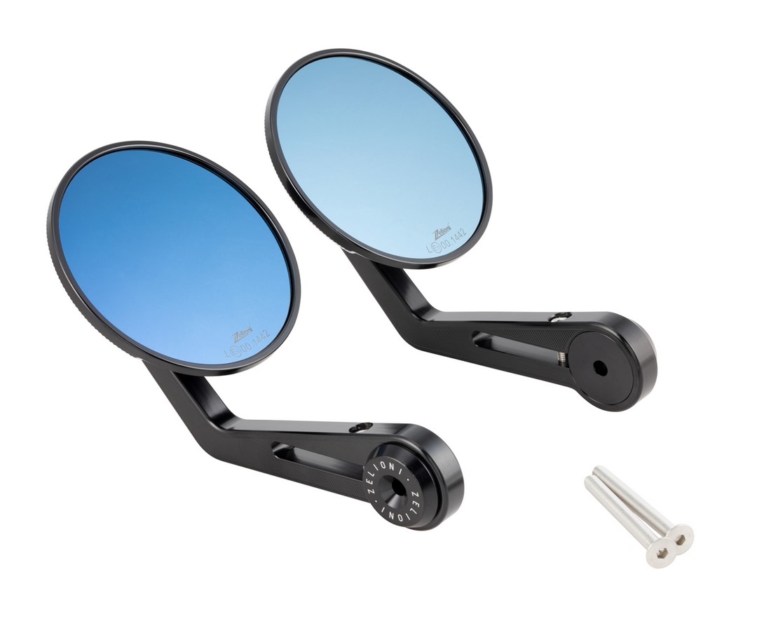 Kit specchietti da barra di ZELIONI. Il kit contiene 2 specchietti comprensivi di materiale di montaggio per il fissaggio all'estremità del manubrio.