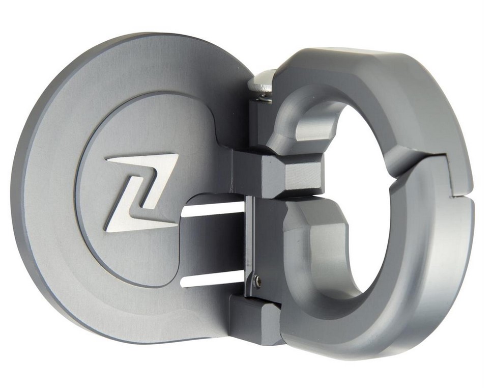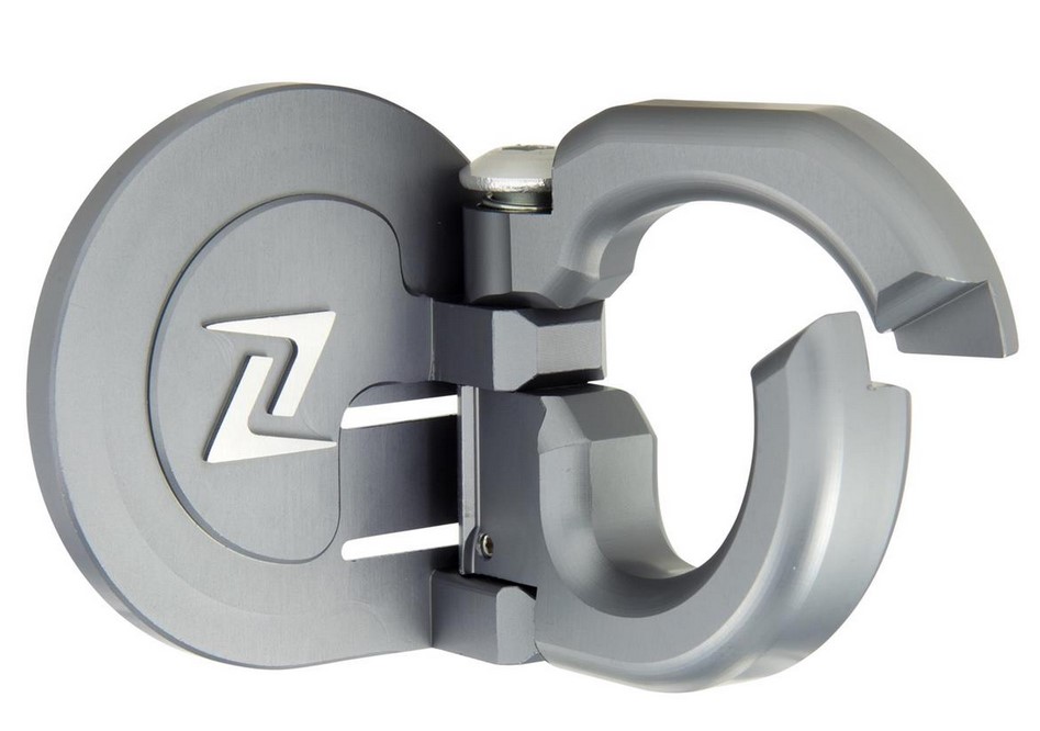 Gancio per il bagaglio in alluminio ad alta resistenza, fresato CNC, grigio opaco, anodizzato, con logo ZELIONI. Pieghevole, con serratura.