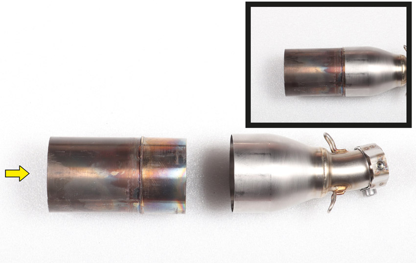 Sia il silenziatore posteriore che il gomito di collegamento sono realizzati in acciaio inossidabile V4A antiruggine. Il silenziatore è dotato di un sottile logo del marchio AKRAPOVIC, dB killer e fondello in carbonio. Disponibile nei colori inox e nero opaco. Entrambe le versioni hanno un cappuccio terminale in carbonio e uno scudo termico in carbonio.