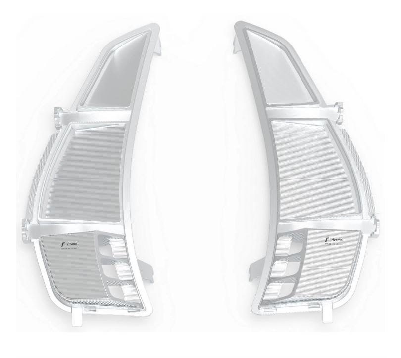Le griglie di ventilazione laterali di RIZOMA sono state sviluppate con particolare attenzione alla dinamica del flusso per migliorare l'uscita dell'aria. Sono realizzate interamente in alluminio billet di alta qualità e offrono una vestibilità perfetta e una lunga durata. Le griglie di ventilazione Rizoma sono un must per tutti i vespisti che apprezzano la qualità e il design.