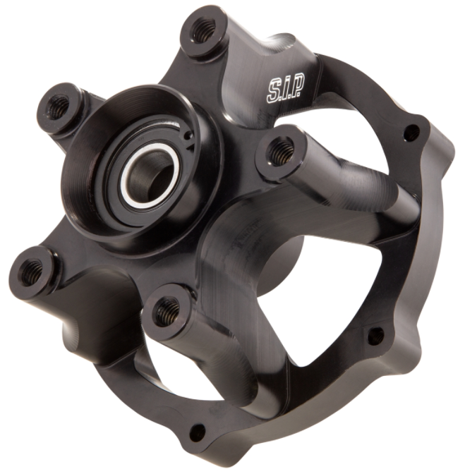 Una lega di alluminio ad alta resistenza viene utilizzata come base per il mozzo della ruota fresato CNC by SIP. Grazie alla lavorazione CNC e al bilanciamento fine del mozzo della ruota, nonché ai cuscinetti estremamente fluidi, si ottiene una concentricità notevolmente migliore rispetto al componente originale. Il mozzo della ruota è adatto per piantoni sterzo PIAGGIO (es. MP3/GTS ecc.) in combinazione con un disco freno con attacco a 6 fori e un diametro del cerchio dei bulloni di 105 mm. Per i modelli fino al 2013 è necessario il pignone per azionare la vite senza fine del tachimetro (codice Piaggio PI267818), i modelli dal 2014 hanno di serie un sensore di velocità integrato nel cablaggio, qui il pignone non è più necessario.
