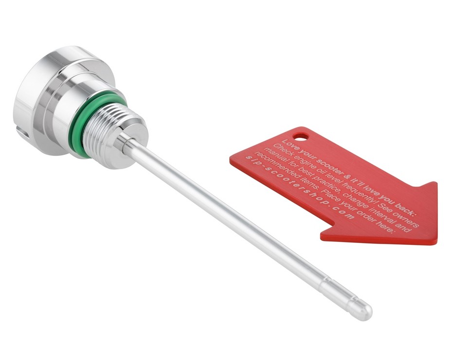 Il tappo di riempimento olio / astina di livello SIP PORDOI per l'olio motore è realizzato di alluminio di alta qualità fresato CNC. Grazie al design semplice, i tappi di riempimento dell'olio sono belli su ogni veicolo e si adattano bene al quadro generale della Vespa. La scala sull'astina di livello è allineata con i tappi di riempimento originali, l'anello di tenuta corrispondente è già applicato.I tappi di riempimento standard vengono spesso rubati dai veicoli parcheggiati. Per rendere più difficoltoso il lavoro alle persone non autorizzate, abbiamo pensato ad un piccolo plus di sicurezza e forniamo uno speciale strumento di montaggio con le viti di riempimento che può essere utilizzato anche come portachiavi.