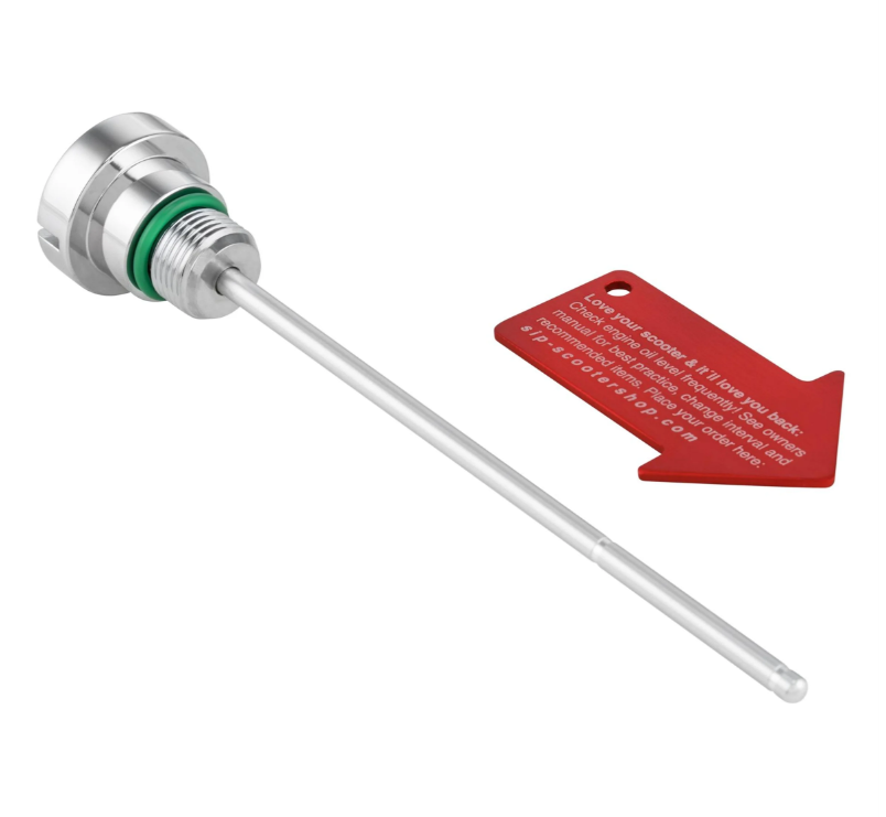 Il tappo di riempimento dell'olio / astina SIP PORDOI per l'olio motore è lavorato a CNC in alluminio di alta qualità. Grazie al loro design semplice, i tappi di riempimento dell'olio si adattano a qualsiasi veicolo e si integrano bene con l'aspetto generale della Vespa. Sull'astina di livello, la scala è allineata ai tappi originali e l'anello di tenuta corrispondente è già attaccato.
