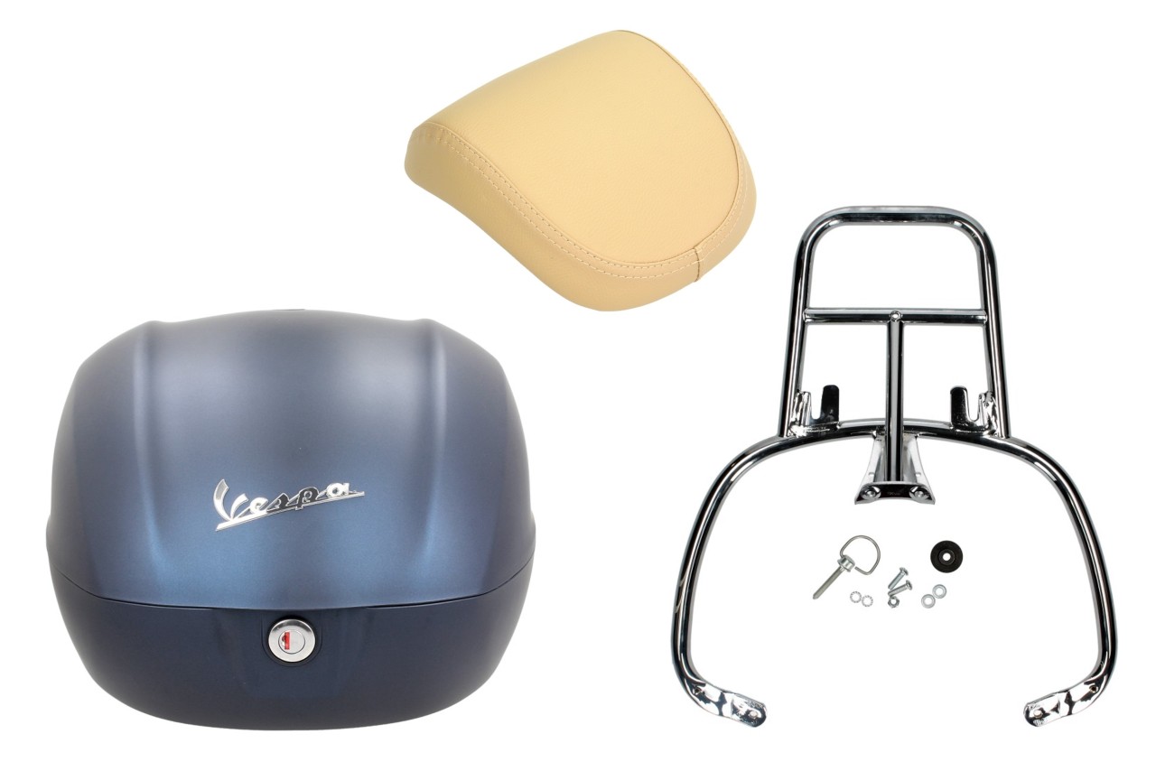 Bauletto verniciato dal design fresco e moderno che si integra perfettamente con le forme morbide e fluide della Vespa. Disponibile in diversi colori per adattarsi al veicolo. Gli schienali sono disponibili separatamente come accessori e nello stesso materiale e colore della sella. Il supporto per il bauletto è disponibile separatamente.