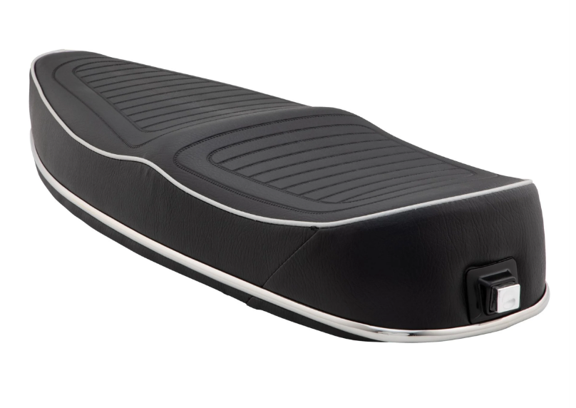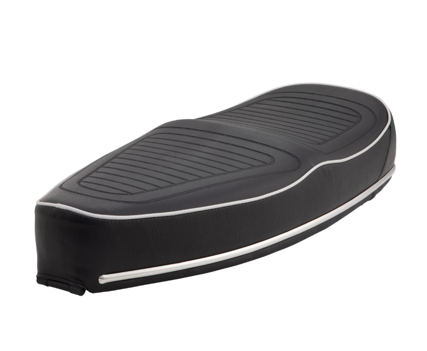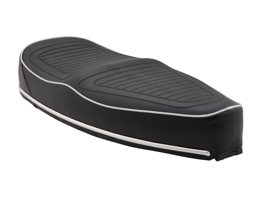 Informazione prodotto "Sella sportiva "Sport" per Vespa PX 80-200ccm, trapuntata nera, bordino argento"