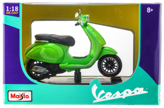 Design senza tempo, alto valore di riconoscimento, queste due caratteristiche degli scooter Vespa sono state immortalate in modo estremamente riuscito in questa serie di modelli della Maisto. Le uniche due ruote in miniatura sono caratterizzate da uno sterzo tipico della Vespa, da raffinati dettagli del motore e dalla caratteristica posizione di seduta eretta. E naturalmente il tutto confezionato in una scatola con il logo originale.
