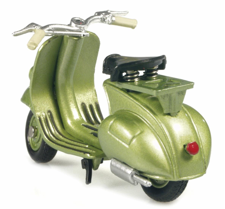 Design senza tempo, alto valore di riconoscimento, queste due caratteristiche degli scooter Vespa sono state immortalate in modo estremamente riuscito in questa serie di modelli di NewRay. Le uniche due ruote in miniatura sono caratterizzate da uno sterzo tipico della Vespa, da dettagli raffinati del motore e dalla caratteristica posizione di seduta eretta. E, naturalmente, il tutto confezionato in una scatola con il logo originale.