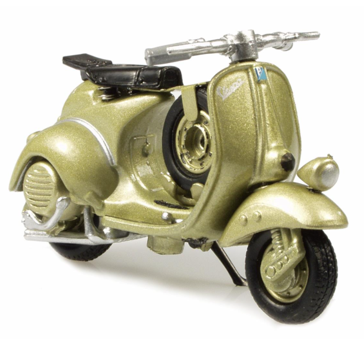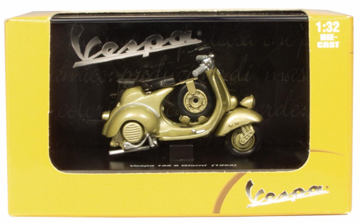 Design senza tempo, alto valore di riconoscimento, queste due caratteristiche degli scooter Vespa sono state immortalate in modo estremamente riuscito in questa serie di modelli di NewRay. Le uniche due ruote in miniatura sono caratterizzate da uno sterzo tipico della Vespa, da raffinati dettagli del motore e dalla caratteristica posizione di seduta eretta. E, naturalmente, il tutto confezionato in una scatola con il logo originale.