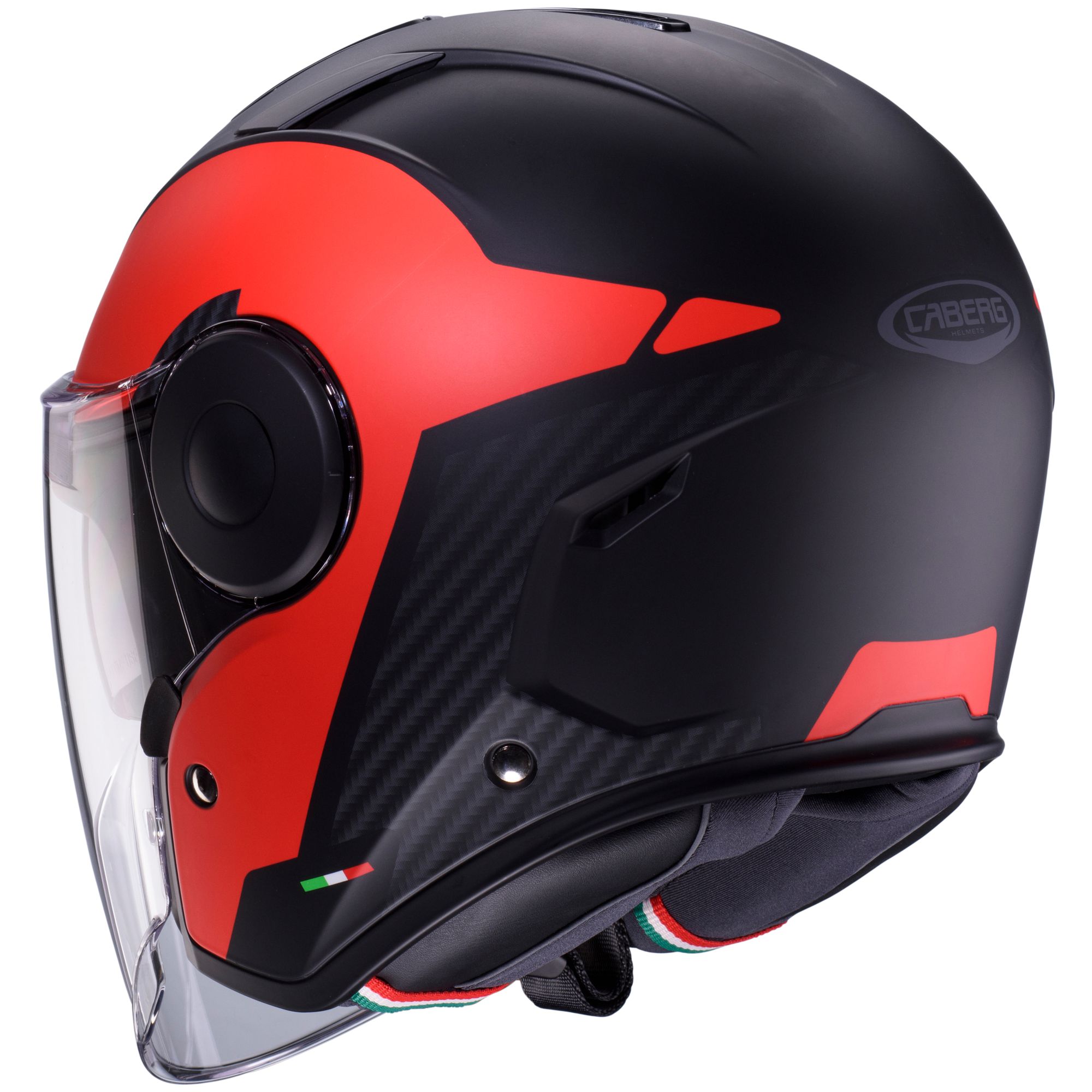 Il casco jet Caberg Soho con decoro Milano nei colori nero/rosso ha le seguenti caratteristiche: