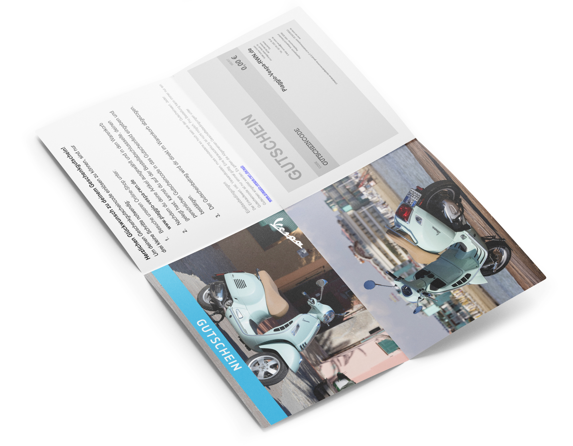 Condizioni di riscatto: Il valore del carrello, escluse le spese di spedizione, deve essere almeno pari al valore del buono. Ogni codice buono è valido una sola volta. È possibile riscattare un solo buono per ordine. Non è possibile effettuare pagamenti in contanti. Si applicano i termini e le condizioni generali di www.piaggio-vespa-rwn.de/agb