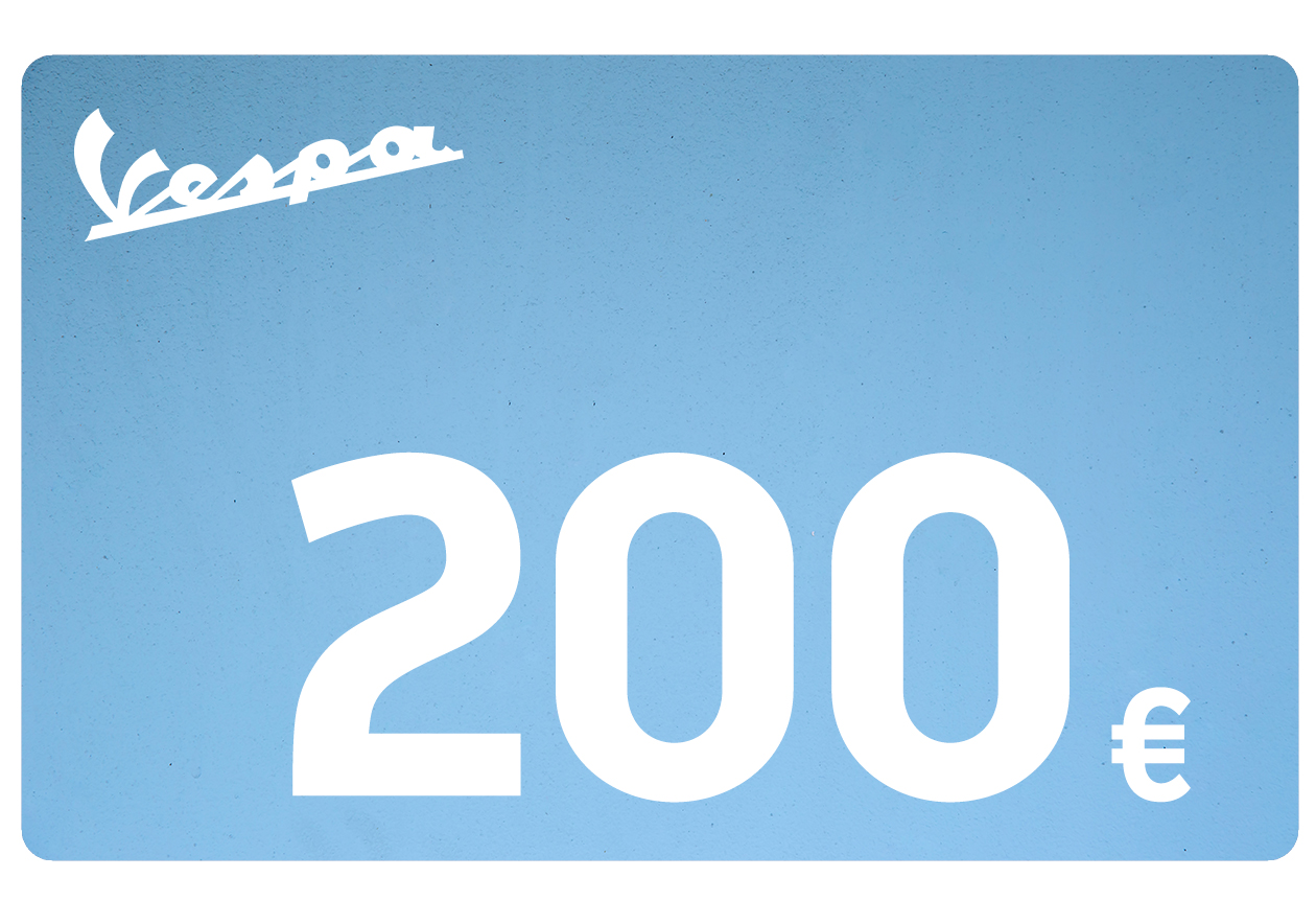 Condizioni di riscatto: Il valore del carrello, escluse le spese di spedizione, deve essere almeno pari al valore del buono. Ogni codice buono è valido una sola volta. È possibile riscattare un solo buono per ordine. Non è possibile effettuare pagamenti in contanti. Si applicano i termini e le condizioni generali di www.piaggio-vespa-rwn.de/agb